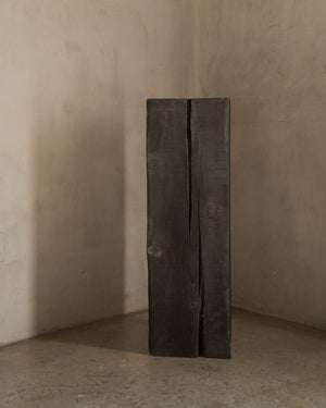 Sculptural in its own right, the Charcoal Sculpture Pedestal, crafted from solid Douglas Fir, undergoes the ancient shou-sugi-ban technique, revealing deep grooves and textures that evolve with time. As it ages, the wood tells its own story, expanding and shifting, showing hints of the natural grain beneath its burnished surface. Raw, organic, and unapologetically bold, this piece brings a sense of wild beauty into your home, letting nature take center stage.