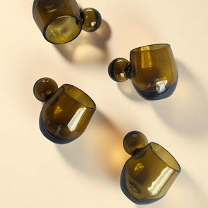 The Roo Glass is made using recycled glass by artisans in Gualajara Honduras. Amber Color. Set of Four