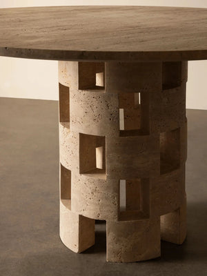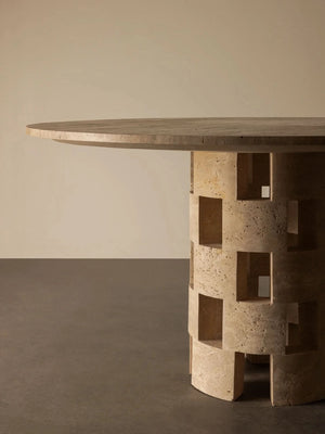 Featured in Style Magazine. Borrowing its architectural lines from a classic patterned check, the Vivi Dining Table features a ‘cut out’ lattice structure and generous, overall scale. Creating beauty with shadow play and defiance through its use of positive and negative space, the Vivi is as much a piece of art as it is a functional and bold dining table.