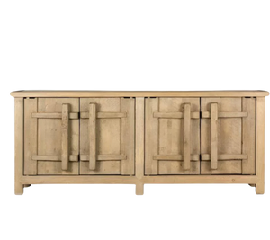 Functional, classic and neutral. This weathered wood sideboard boasts four doors with lots of shelving, lending itself to a range of interiors from coastal to scandi-rustic.