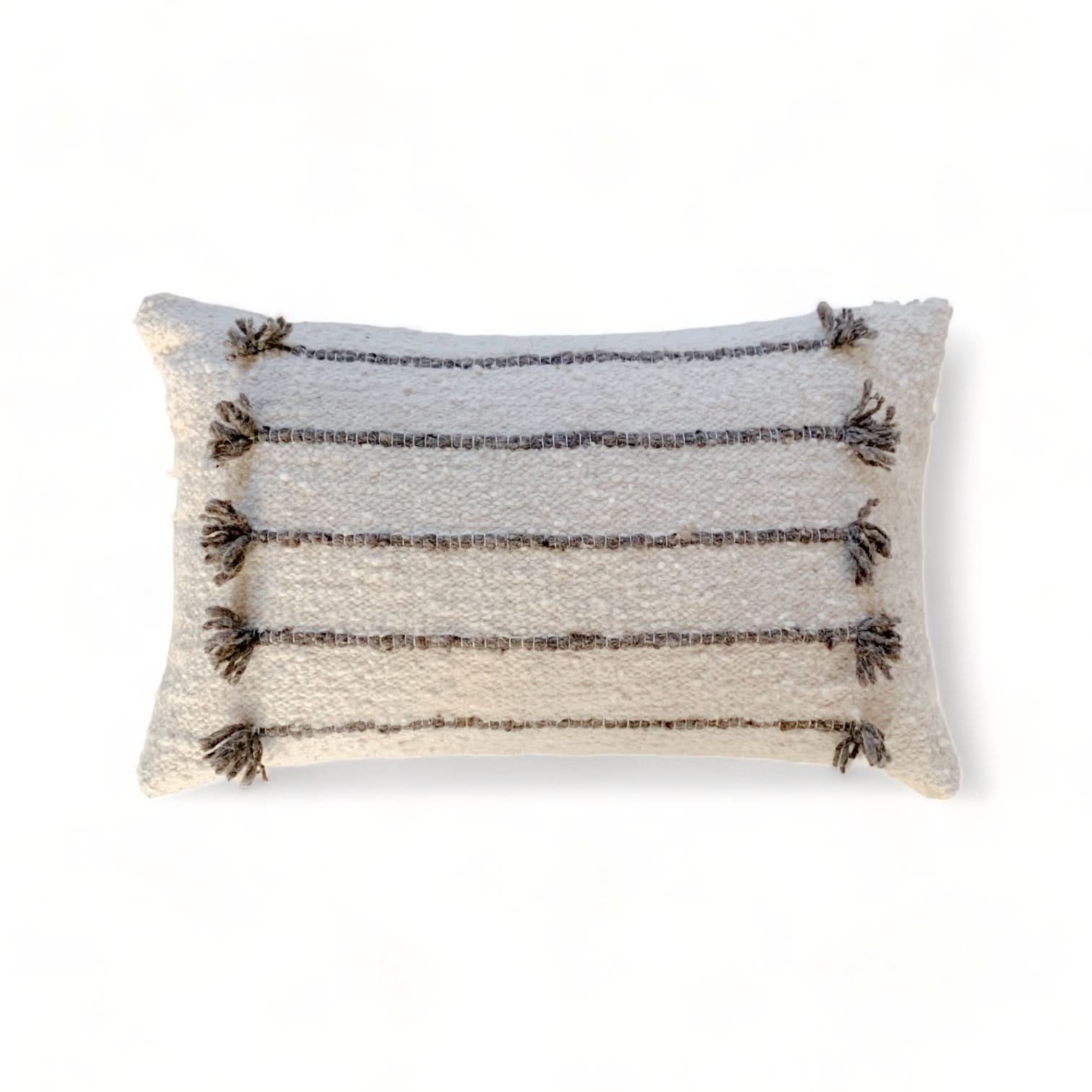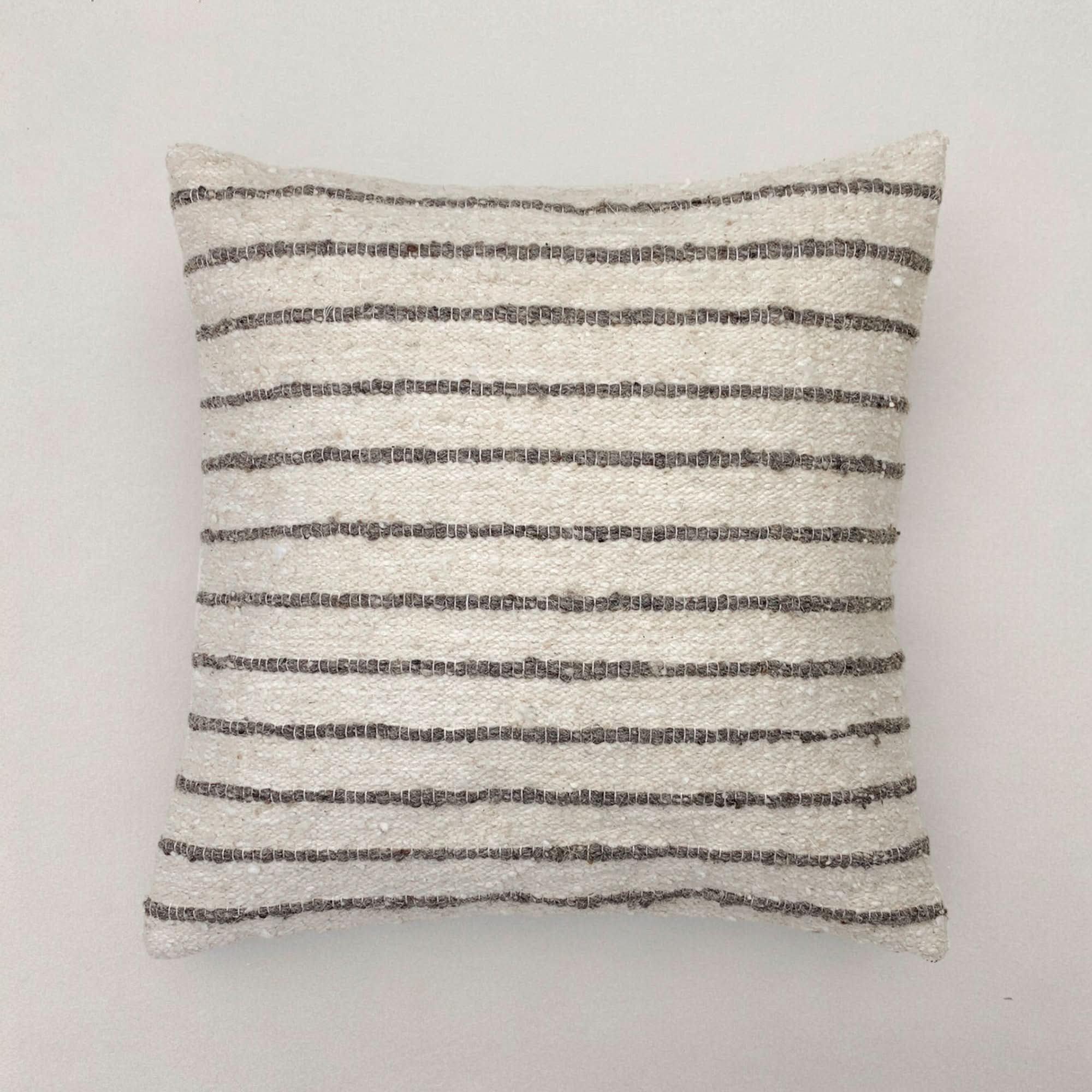 The Gray pillow covers are made from 100% hand-spun wool made in a pedal-loom. Each piece is hand-loomed in an artisan community in the Momostenango region of the Guatemalan highlands. The natural wool gives it a lush luxurious feel. Our pillows are crafted by hand, one at a time, so there will be slight variations in size and color. Through your purchase, you are helping to create sustainable income opportunities for Guatemalan artisans. ________ Natural Ivory and Natural Gray Front: Natural hand-spun wool with a cotton warp / Back: 100% cotton canvas Pillow inserts are not included. ________