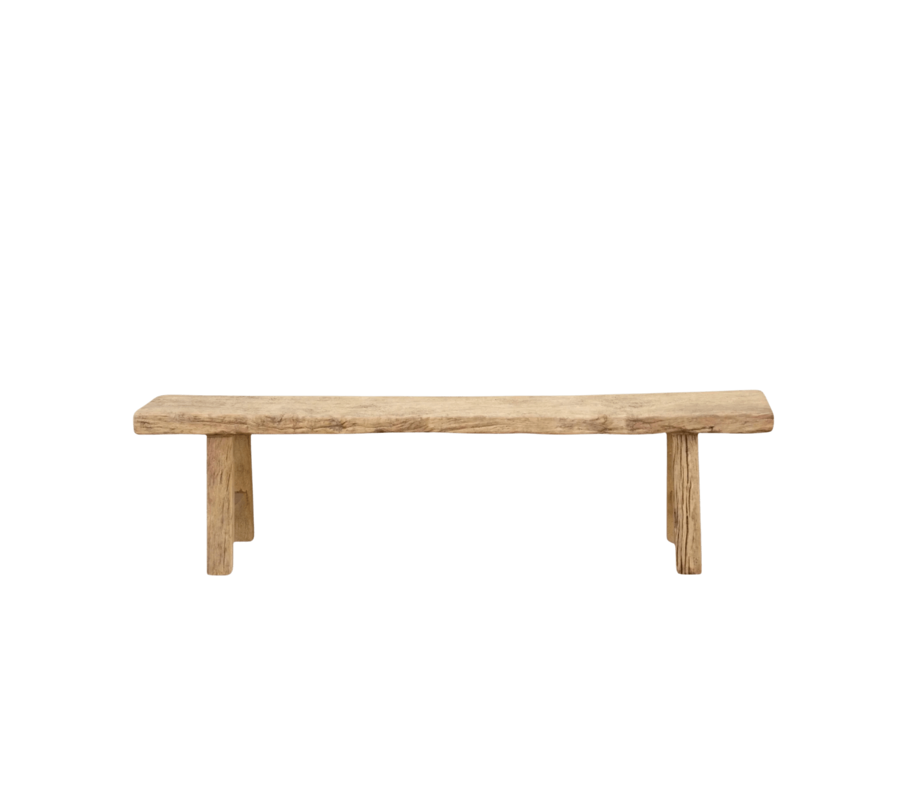 A rustic masterpiece that embraces the essence of wabi-sabi and organic modern design. Handcrafted from recycled elm wood, each bench boasts its unique grains and knots, showcasing nature's imperfect beauty.