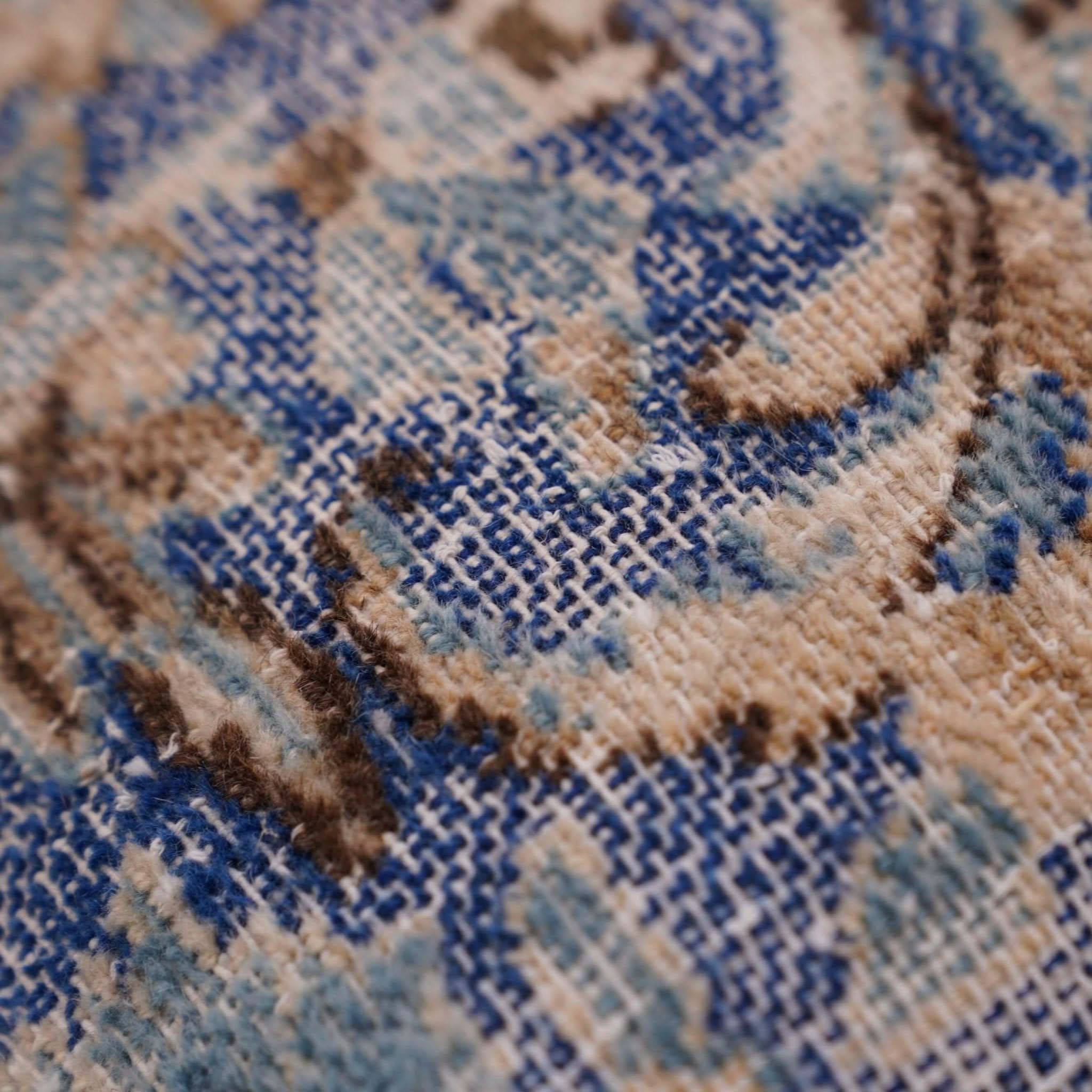 Gorgeous One-of-a-kind blue and brown throw pillows are made from a 20th-century Antique Rug.