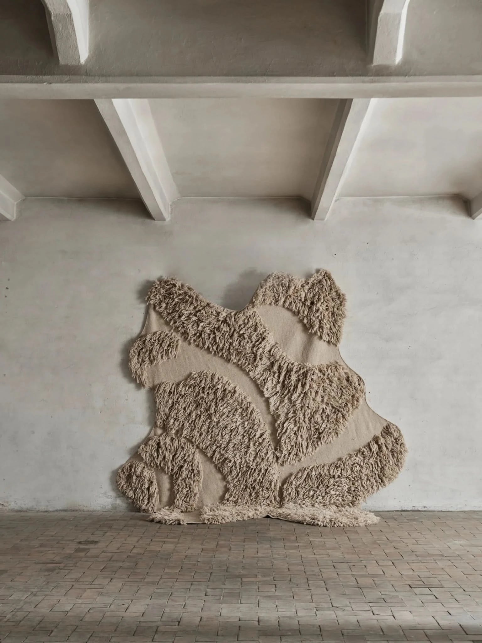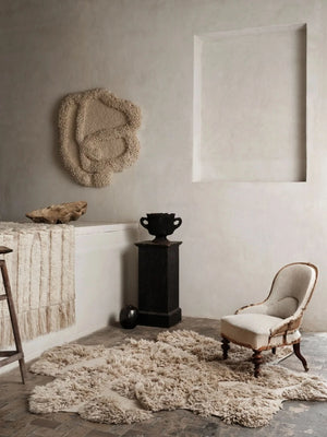 no.08is a true eclectic statement piece. Its organic and irregular shape creates a soft and artistic vibe with its texture in highs and lows creating a vivid and intriguing tactility. The rug is crafted from natural unbleached New Zealand wool in a soft crème beige.