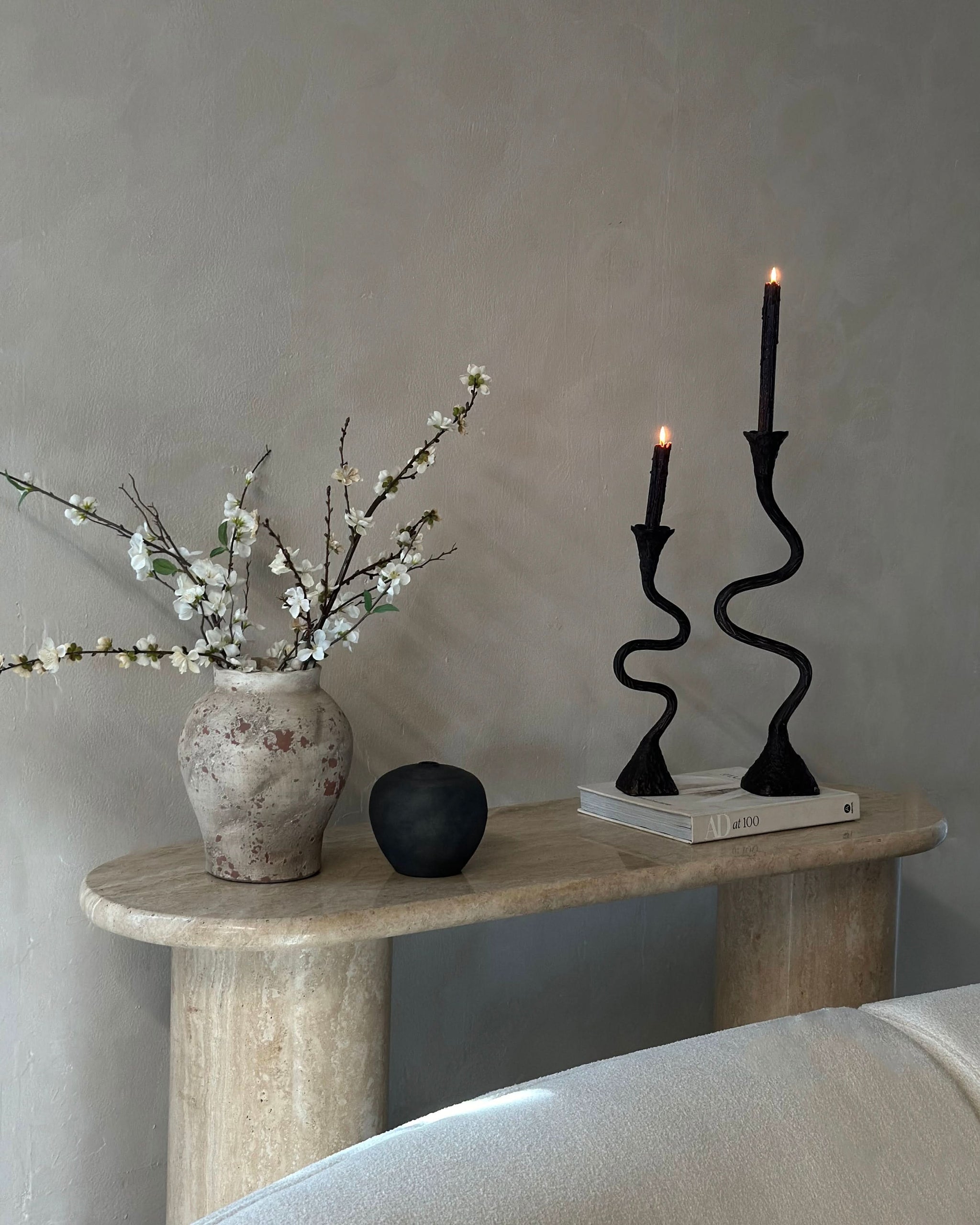 Introducing the Suri Candleholders. Made fusing traditional metal working techniques in a small local forge. Every element is lovingly hand forged end to end, each piece a work of art. They are finished with a textured vintage patina element to take you back to past times and bring character to your home design.