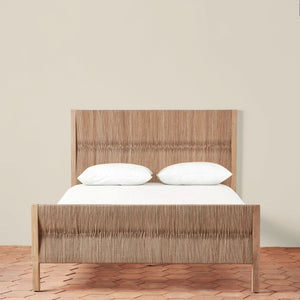 Inspired by the rich craft traditions of Mexico, this timeless woven bed adds a sun-soaked and serene quality to any bedroom. Crafted from sustainable beechwood in a warm finish, this piece’s head and footboards are handwoven of seagrass rope into a classic rush pattern. A stunning, high-textured look that plays beautifully off morning light and crisp bedlinens.