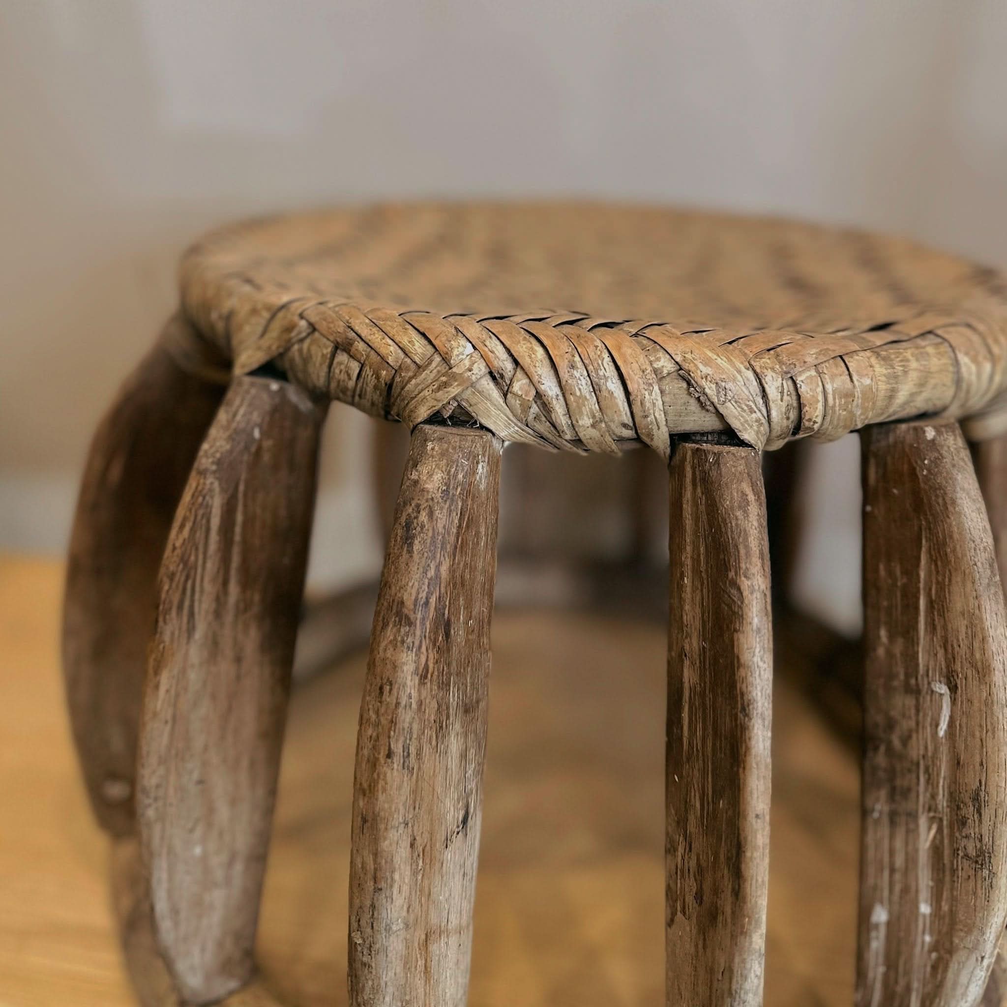 For centuries, these round stools have been a staple in the households of Chinese farmers and villagers. They feature delicate yet durable hand-woven wicker detailing and curved wooden legs.