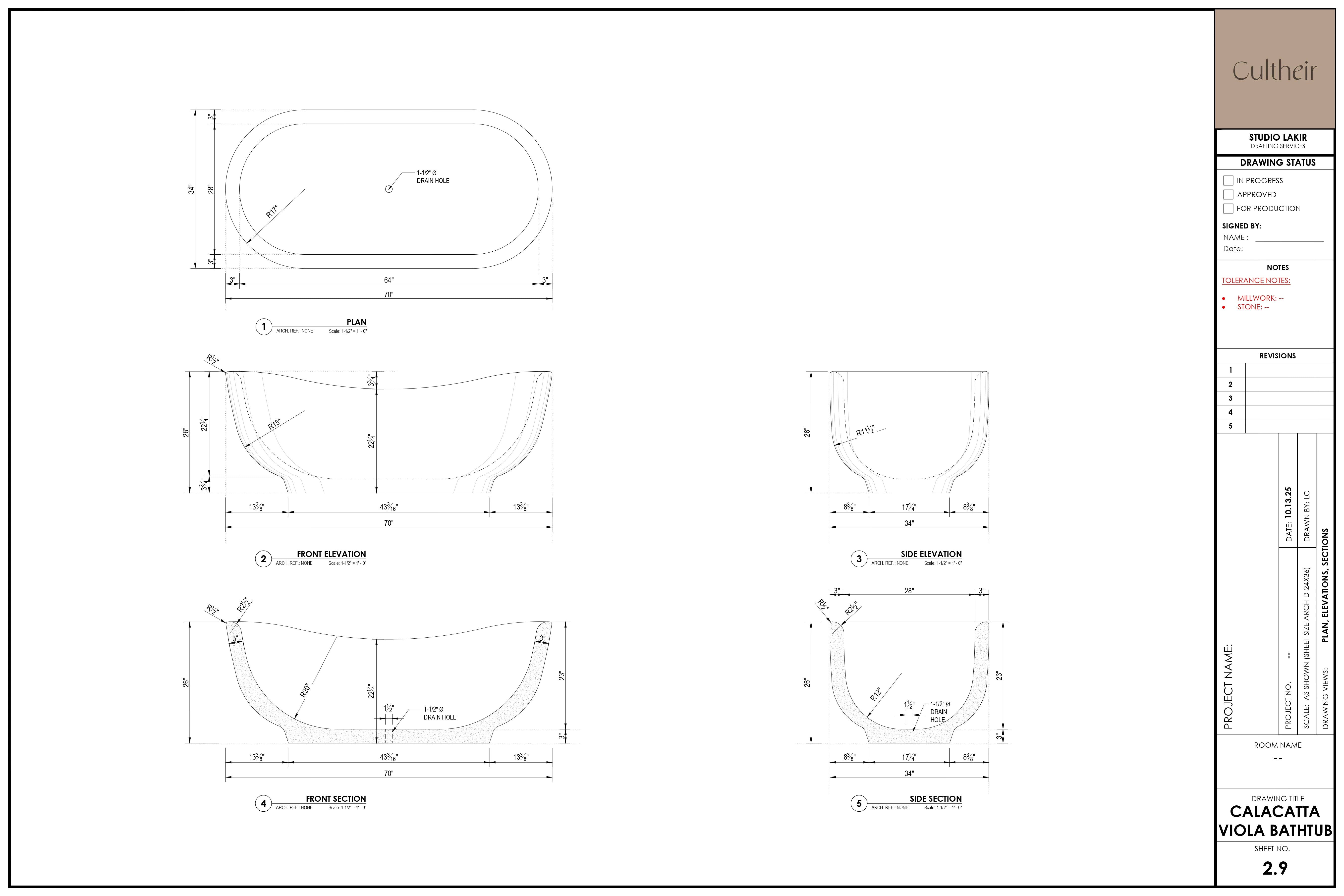 Calacatta Viola Bathtub Hand-carved from a single solid block.Technical drawing can be provided if requested.