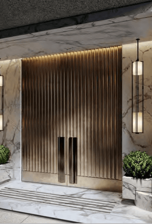 Drawing inspiration from the fluted columns of classical architecture, the Angulat Brass Door pays homage to the Doric, Ionic, and Corinthian columns. These fluted motifs are finely embellished onto the surface, crafting a new legacy of antiquity inspired by the architectural past. The burnished brass exterior along with an aged brass handle accentuates the gold and brown hues - the classics. The door's metal skin is handcrafted, made by our artisan partners in India.