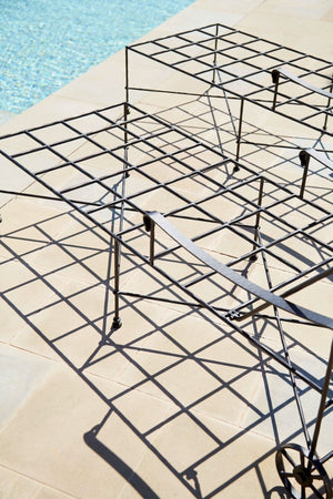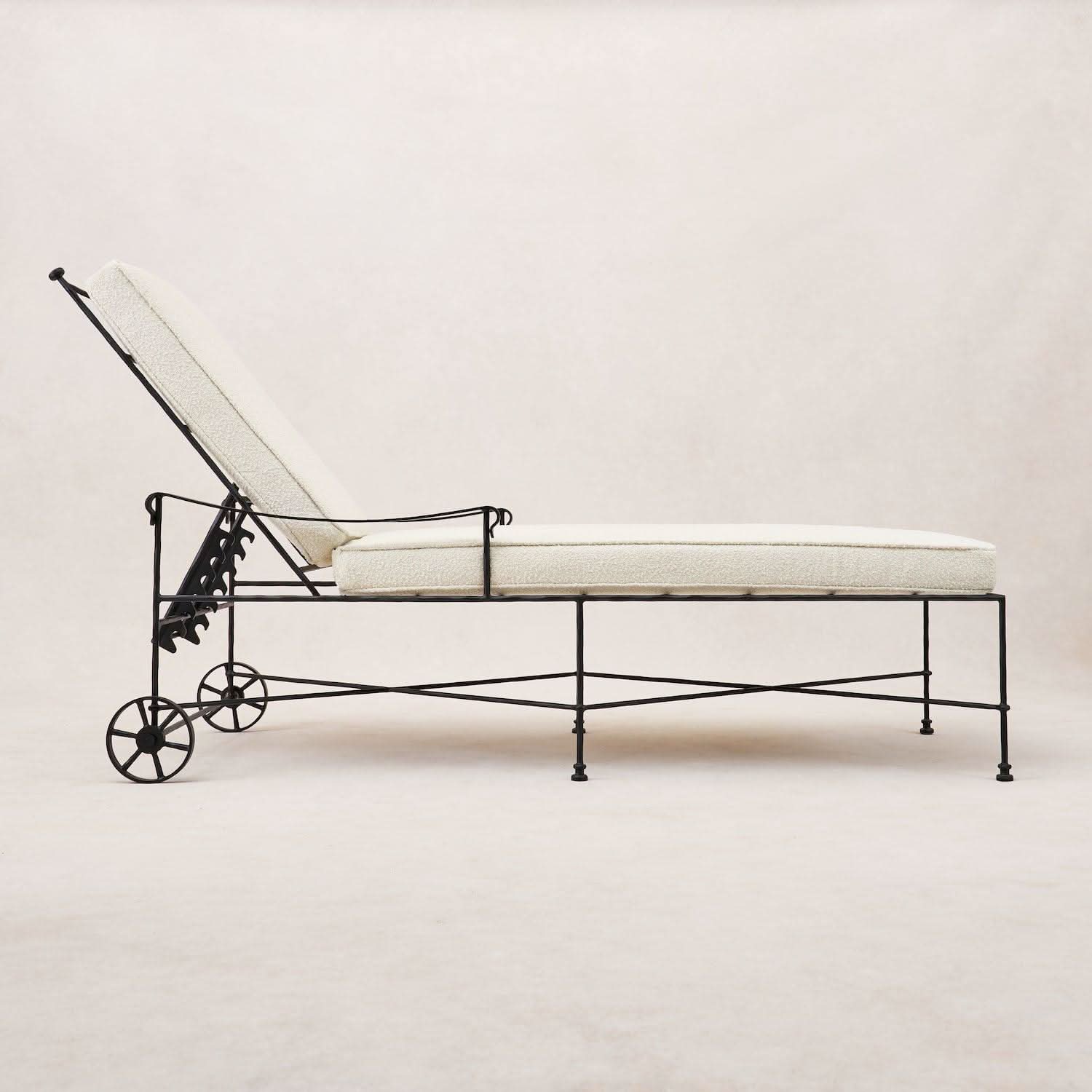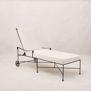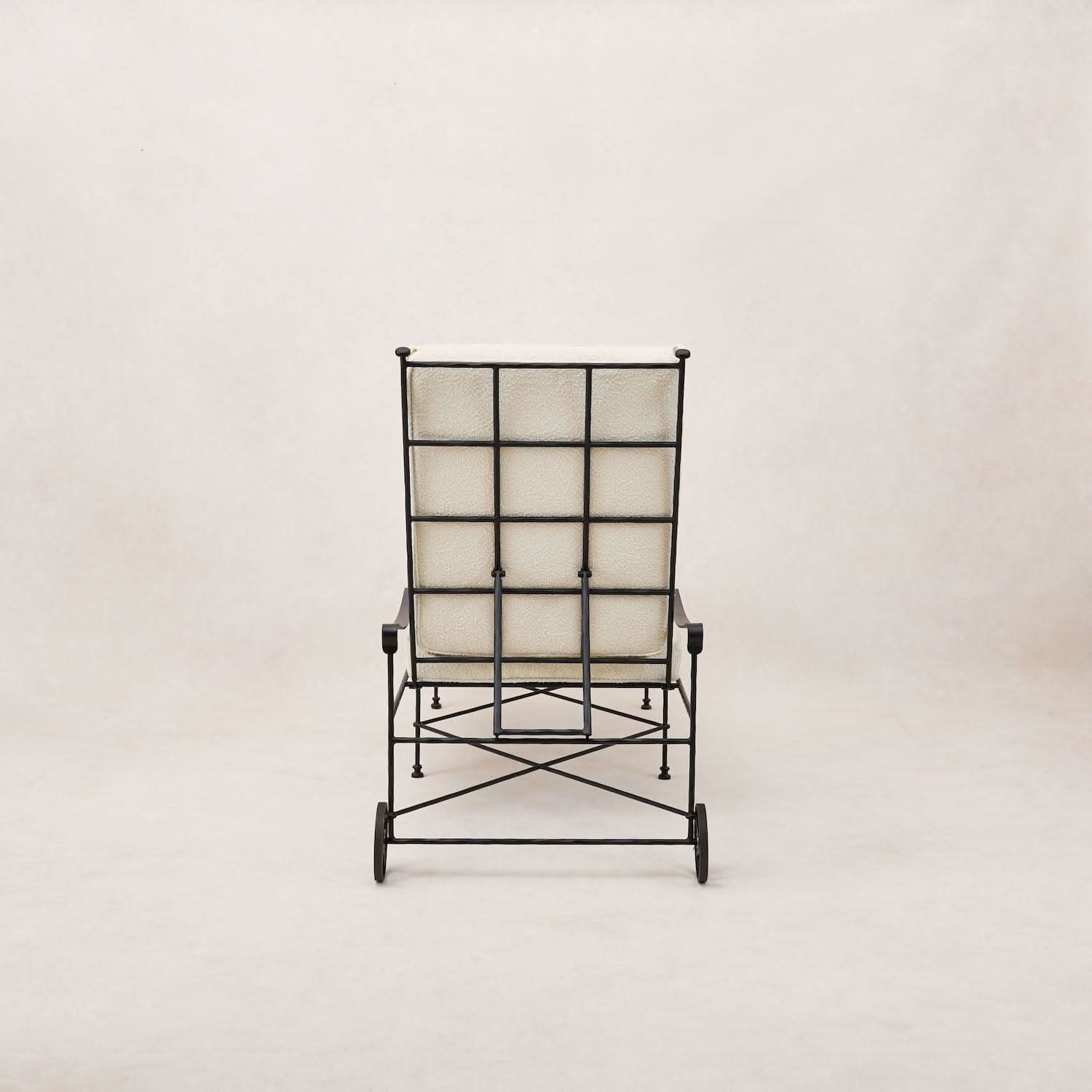 Crafted with a slender handmade iron frame and upholstered in plush, weather-proof outdoor boucle, it’s designed to withstand the elements while providing lasting beauty. What truly sets this chaise apart is its unique design; even when the cushions are tucked away for safekeeping, the frame stands elegantly on its own, enhancing your outdoor space year-round.