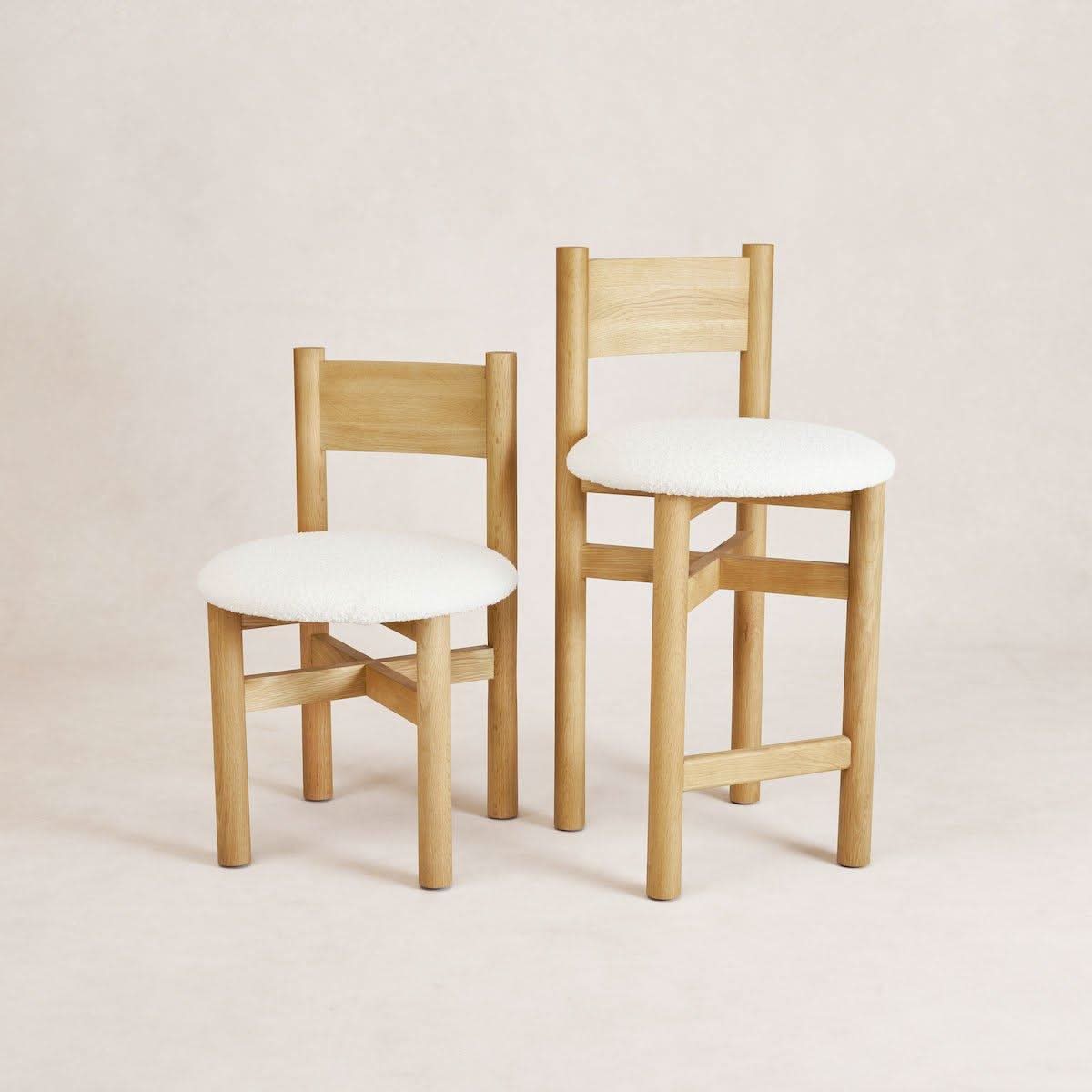 The Teddy Counter Stool is a delightful blend of style and comfort, featuring a sleek frame paired with a wide, inviting seat. The combination of solid white oak and chunky white boucle fabric makes a bold statement that enhances any family space while ensuring comfort for you and your guests.