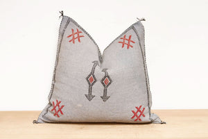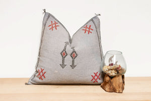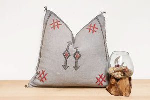 Indulge in the luxury of our handcrafted Moroccan cactus silk pillow. Each cactus silk pillow is a testament to centuries-old Berber tradition, woven from the resilient fibers of the Saharan aloe vera cactus. Adorned with one-of-a-kind tribal embroidery, meticulously dyed with natural vegetable pigments, this handmade pillow showcases the artistry of Moroccan artisans.