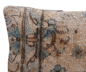 This elegant pillow is a perfect blend of modern and antique styles. The distressed pattern adds texture and depth, while the beautiful colors and unique design give it a sophisticated and mesmerizing look. Made by skilled artisans, this pillow is a true work of art. It is sure to be a standout piece in any decor and will add a touch of elegance to any room. Whether placed on a couch, armchair, or bed, this pillow is sure to impress and delight.