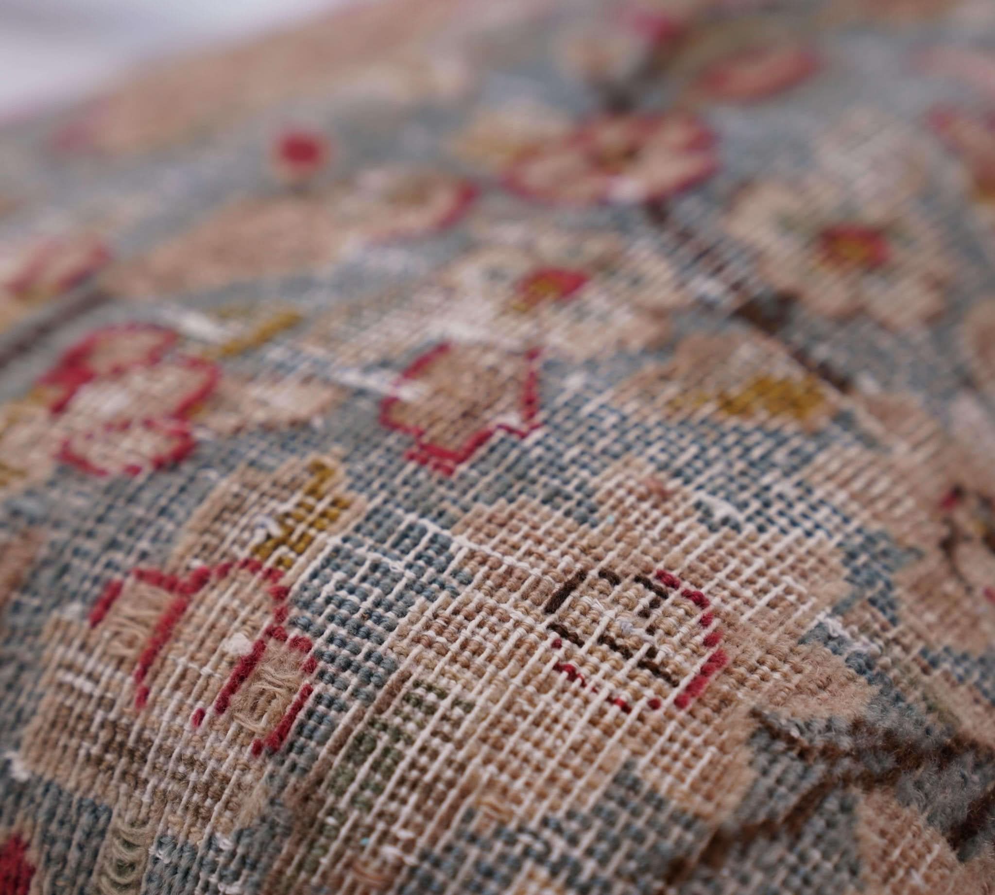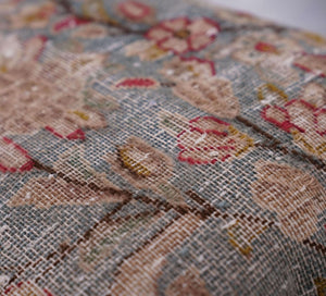 This elegant pillow is a perfect blend of modern and antique styles. The distressed pattern adds texture and depth, while the beautiful colors and unique design give it a sophisticated and mesmerizing look. Made by skilled artisans, this pillow is a true work of art. It is sure to be a standout piece in any decor and will add a touch of elegance to any room. Whether placed on a couch, armchair, or bed, this pillow is sure to impress and delight.