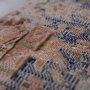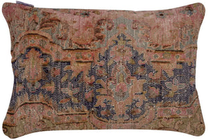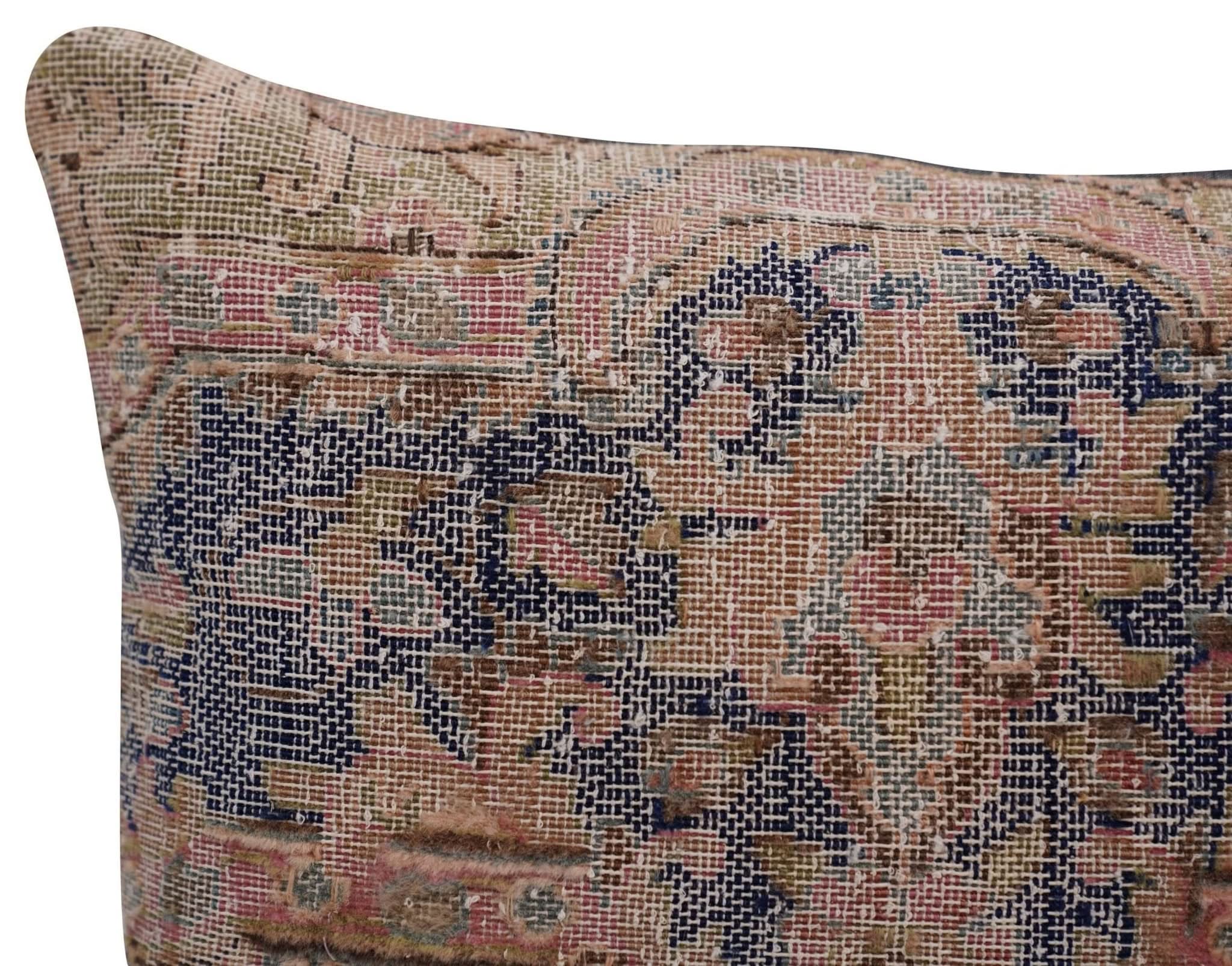 This elegant pillow is a perfect blend of modern and antique styles. The distressed pattern adds texture and depth, while the beautiful colors and unique design give it a sophisticated and mesmerizing look. Made by skilled artisans, this pillow is a true work of art. It is sure to be a standout piece in any decor and will add a touch of elegance to any room. Whether placed on a couch, armchair, or bed, this pillow is sure to impress and delight.