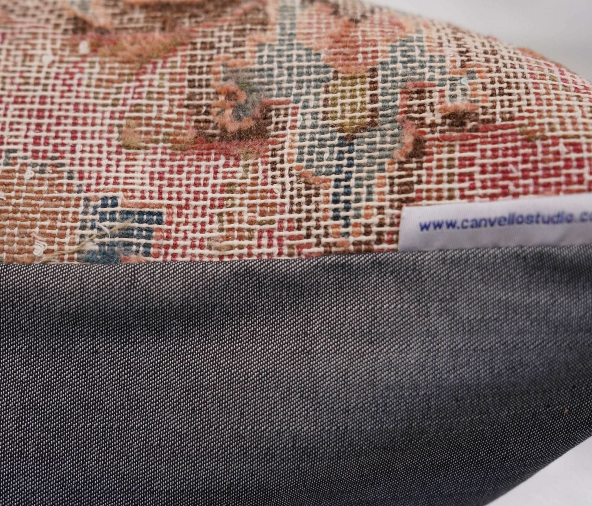This handmade throw pillow is a beautiful and unique addition to any home decor. Made with antique vintage distressed wool rug, it adds a touch of timeless casual chic to any room. The distressed texture of the wool gives the pillow a vintage, lived-in look that adds character and warmth. Whether placed on a couch, armchair, or bed, this handmade throw pillow is sure to be a conversation piece and a favorite among family and guests.