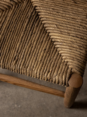The Arnaud Tabouret embraces a classic silhouette with its woven rush seat and warm oak palette. The Arnaud Tabouret marries function with comfort through the harmony of natural elements.