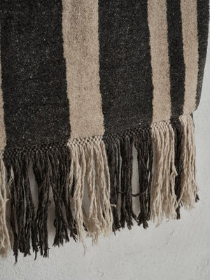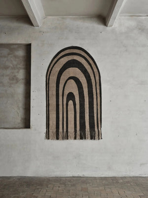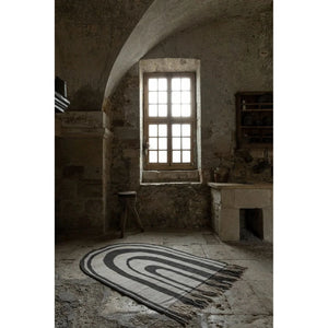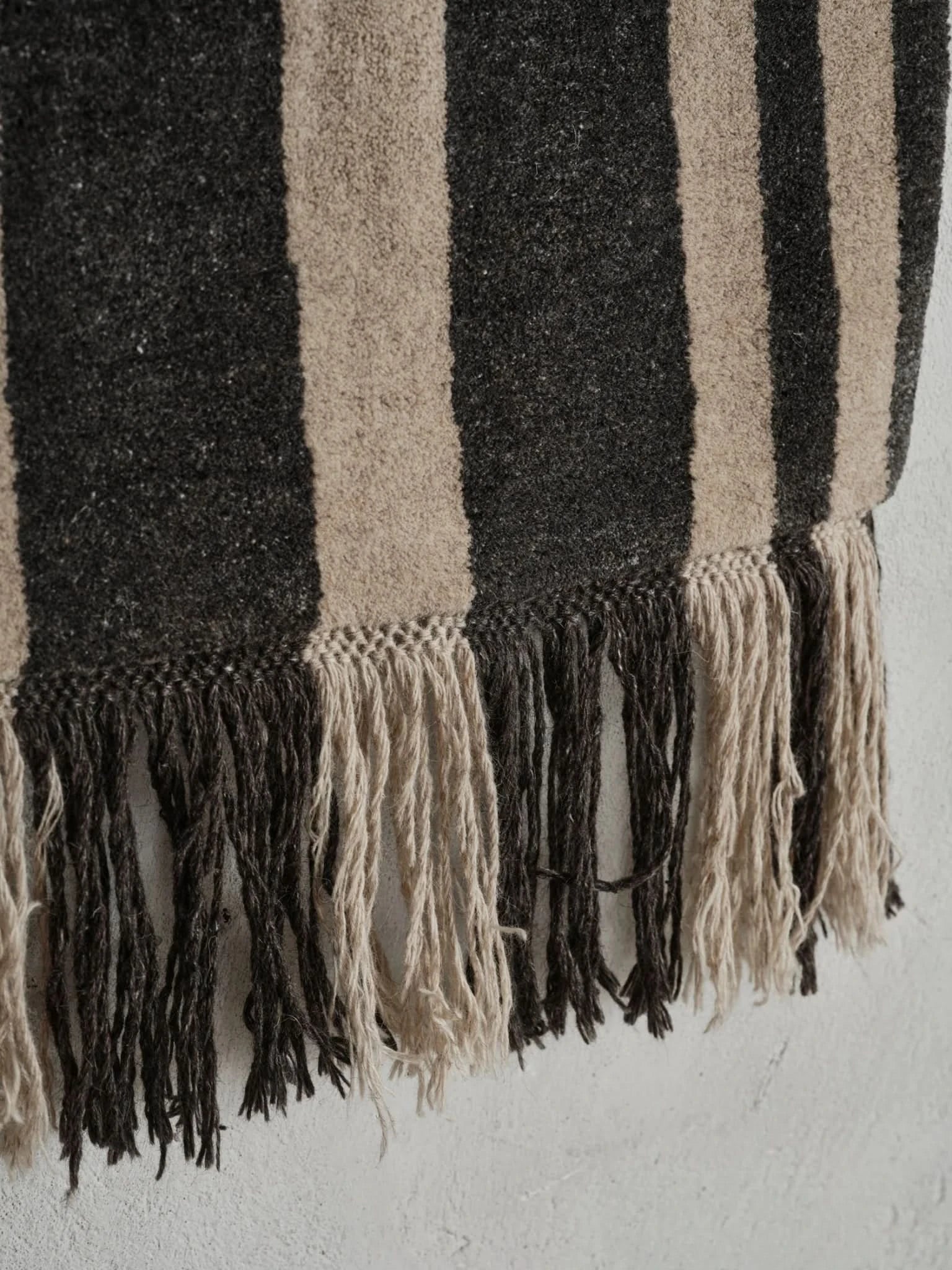 no.06 is a continuation of the iconic no.01 in a limited and luxe edition. The soft low pile has been hand knotted by the craftsmen with approximately 90 knots per inch which creates this true piece art. The curved triumph shape and the soft contrast between the dark grey and sandy beige creates an eclectic and bold signature piece. A long fringe edge elevates the end line and adds an arty detail.