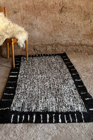 Produced by a family owned mill of 40+ years, these exquisite rugs are artisan-made and 100% handwoven from Namibian Swakara wool; all designs showcase the fiber’s natural colors. Swakara wool comes from a unique Karakul sheep breed found only in southern Namibia. Bearing the Furmark seal, this wool reflects the farmers' strong commitment to environmental care and animal welfare, supported by an authoritative certification process. The weaving begins on hand-built upright looms, forming the warp skeleton, onto which the weft is meticulously handwoven. Every stage—from shearing and washing to hand carding and spinning—is completed entirely in-house by this artisan maker, ensuring exceptional craftsmanship with every thread.
